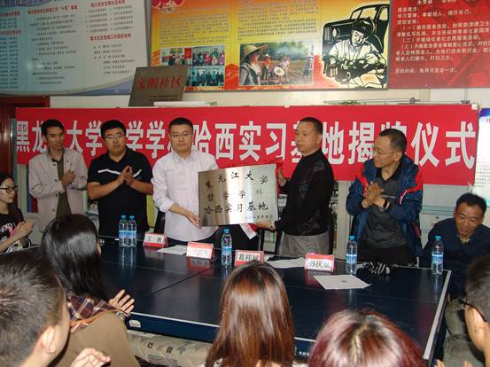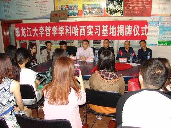 为进一步强化哲学学科教学实践环节,在黑龙江大学党政领导班子及教务处等各部门的大力支出下,6月9日上午,黑龙江大学哲学学院与哈西街道办事处举行共建黑龙江大学哲学学科哈西实习基地揭牌仪式,这是继香坊大街实习基地之后,黑龙江大学哲学学院开辟的第二个本科学生实习基地。
