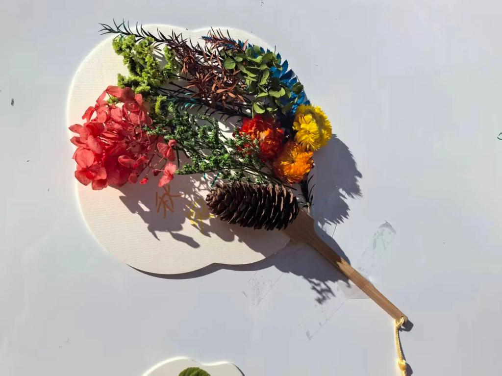 活动现场氛围温馨热烈,同学们在传统团扇上点缀秋色干花,于方寸折纸间展现指尖匠心,在卡纸上涂出属于自己情感的颜色,以缤纷彩绘传递情感温度,让千年雅韵在现代校园中焕发新生,让融融暖意流淌于每一个参与者的心间。