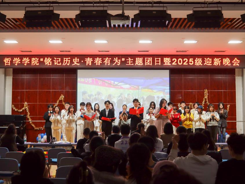 此次“铭记历史·青春有为”主题团日暨2025级迎新晚会不仅是新生展示自我的舞台,更搭建了师生、同窗间交流的桥梁。未来,哲学学院学子将在新的起点上扬帆远航,共同书写更加辉煌的篇章。(哲学学院供稿)