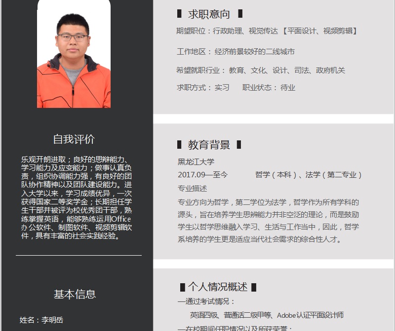 了帮助同学们,提升简历制作技巧掌握求职技巧,加强就业指导,进一步树立职业规划意识,了解职业需求,帮助大学生迈好求职第一步,进一步提高大学生就业积极性和主动性,2019年6月1日至10日,哲学学院面向学院非毕业年级学生举办了简历大赛。