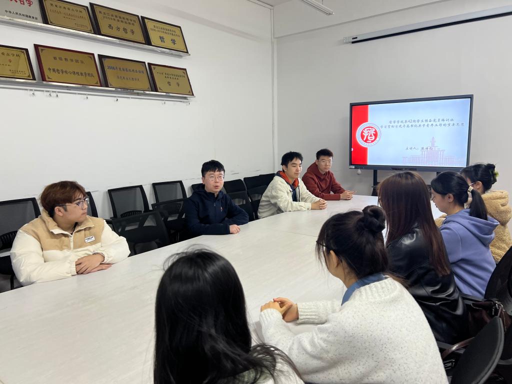 为进一步巩固学习贯彻习近平新时代中国特色社会主义思想主题教育成果,学习贯彻习近平总书记视察黑龙江期间的重要讲话重要指示精神,夯实学生党员先锋工程,引导广大学生党员进一步发挥先锋模范作用,激发爱党、爱国、爱校情怀,按照校学生工作部《学生工作部:关于举办第42期学生预备党员培训班的通知》要求,哲学学院于2023年10月17日至29日组织开展了学院层面第42期学生预备党员培训活动。
